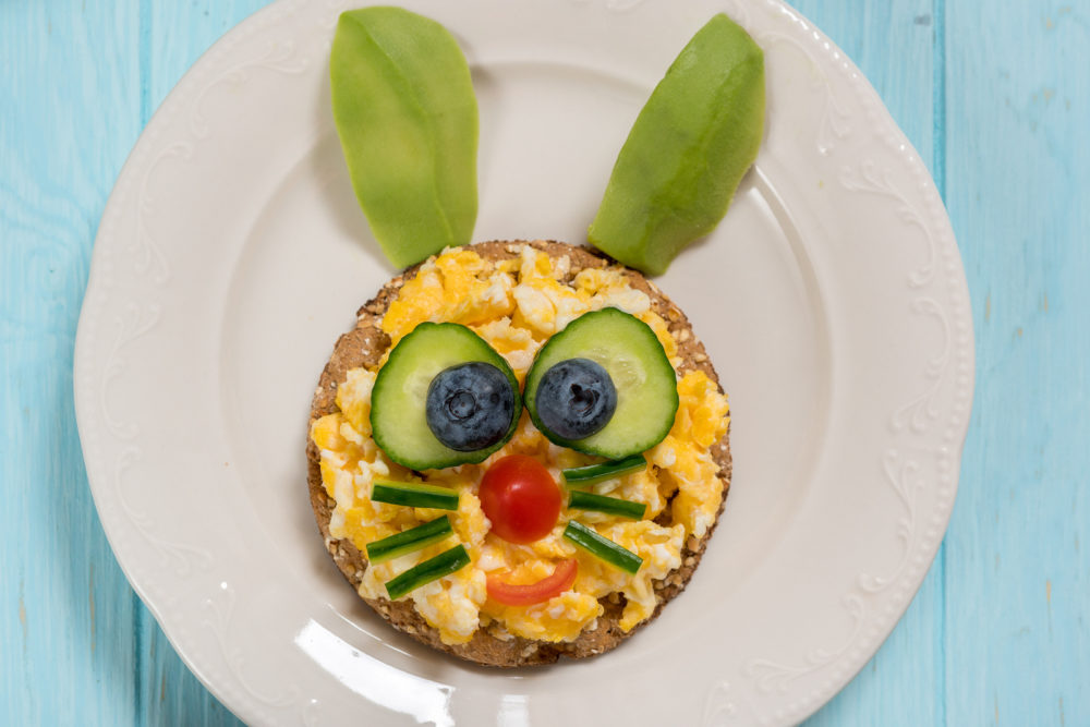 Of course you should not play with your food, but if you like eggs in the morning then how about a "who-can-make-the-funniest-face?" competition? 🙂 To make our bunny we used a cookie cutter to cut the toast and some avocado and a few vegetables. What is your best breakfast face?